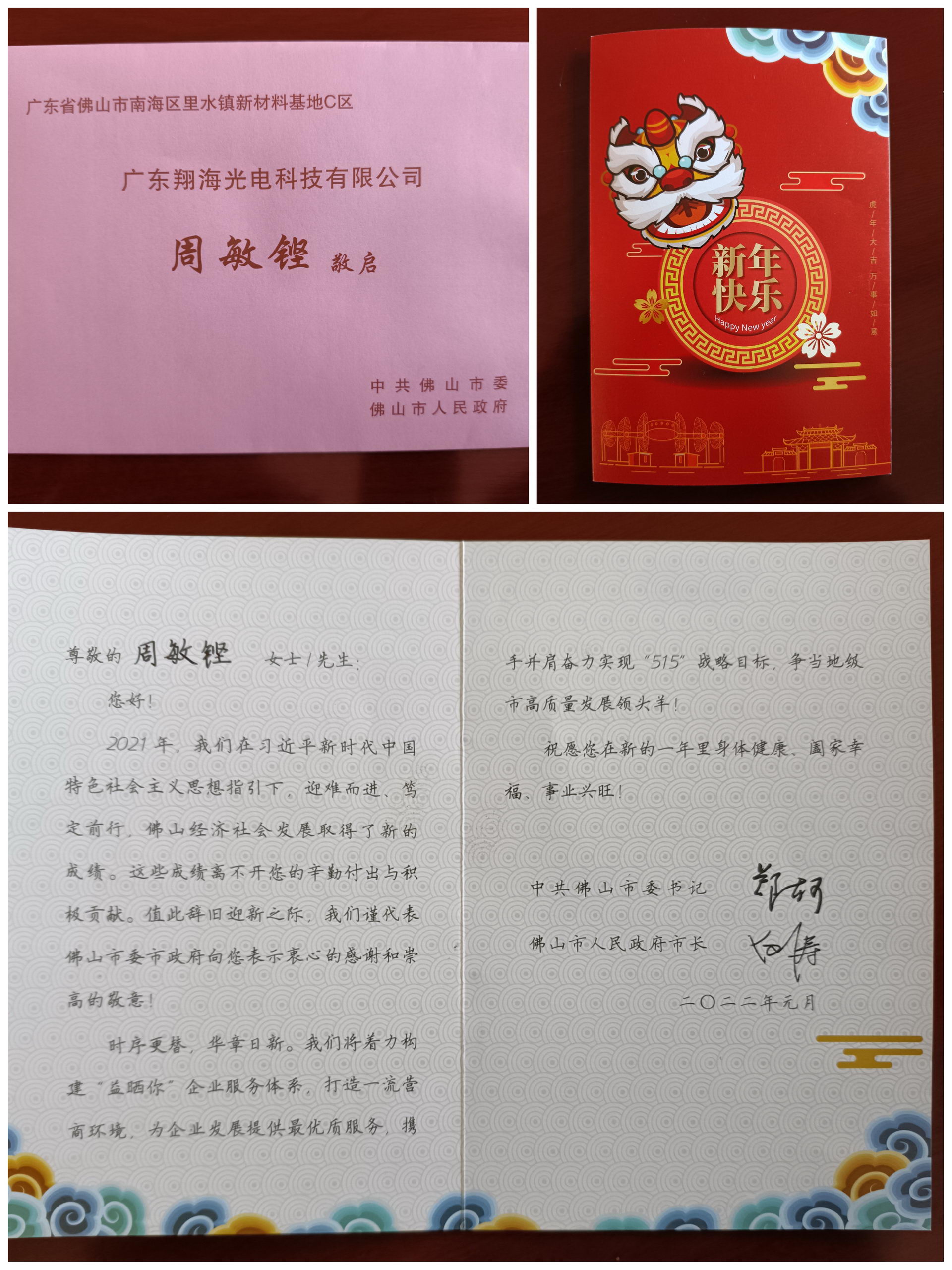 值此辞旧迎新之际,广东华体会平台华体会(中国)一站式服务平台有限公司收到了来自佛山市委、市政府的新年贺卡,深切感受到了党和政府对企业的关心与祝福,倍感温暖、备受鼓舞。