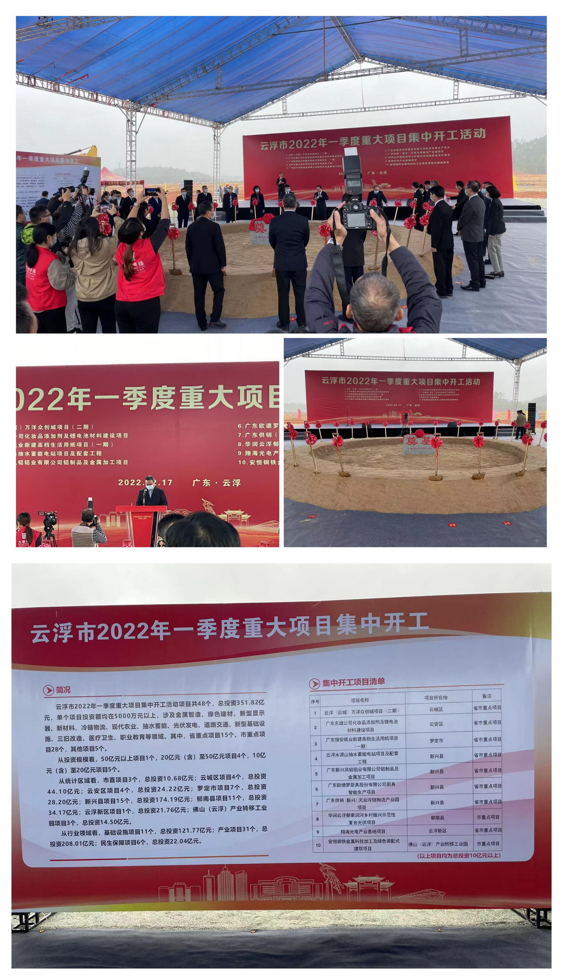 2月17日,云浮市政府举行2022年一季度重大项目集中开工活动,华体会平台光电作为代表企业之一,与省、市委市政府领导及多家项目代表共同出席了奠基仪式。