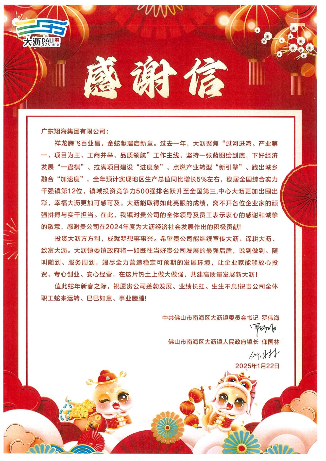 华体会平台深感荣幸,新春之际收到了一封来自大沥镇政府的感谢信。作为大沥的本土企业,我们深知企业的成长离不开当地政府和社会各界的支持与厚爱。在此,我们衷心感谢大沥镇委镇政府,感谢各位合作伙伴的鼎力支持和信任。